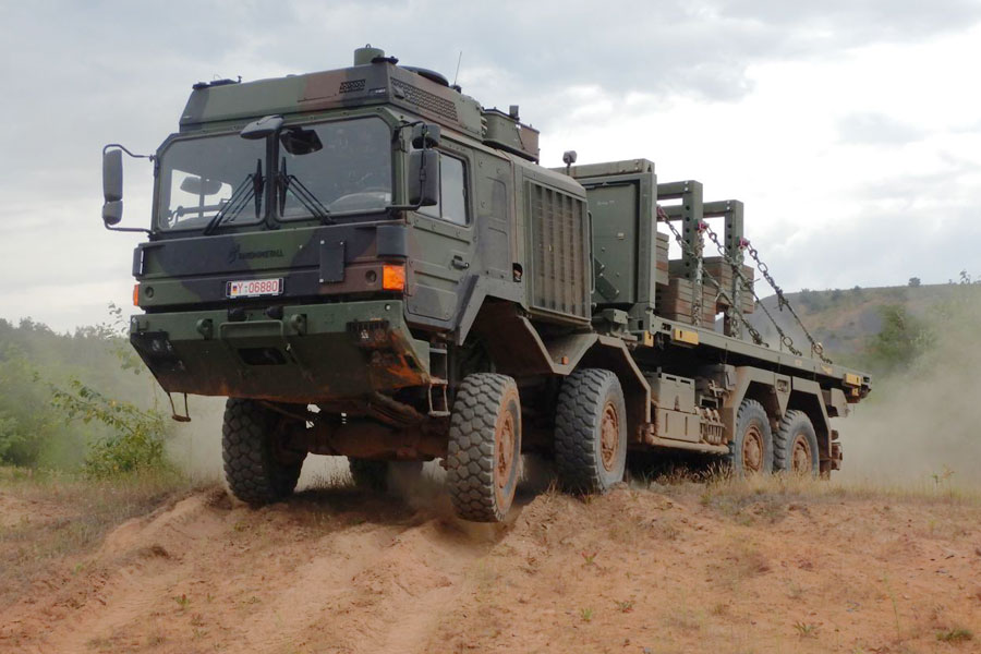 The HX PLS truck can load and unload up to 16.5 tonnes of equipment without the need for the operator to leave the cabin. The HX provides a quicker, easier and safer method for getting stores around the battlefield and offers improved interoperability with other NATO nations.