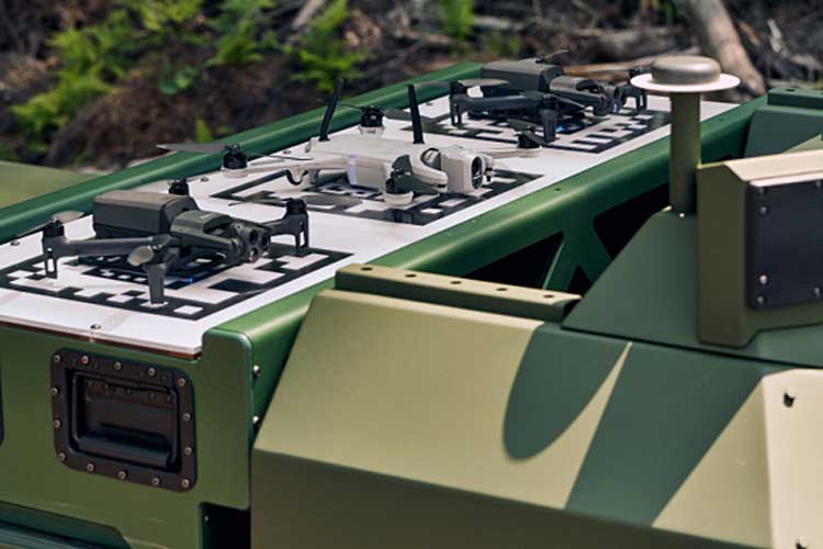 The Quaze DSTOW, an autonomous and agnostic drone charging solution, is utilised on a Rheinmetall Mission Master Uncrewed Ground System [© Quaze]