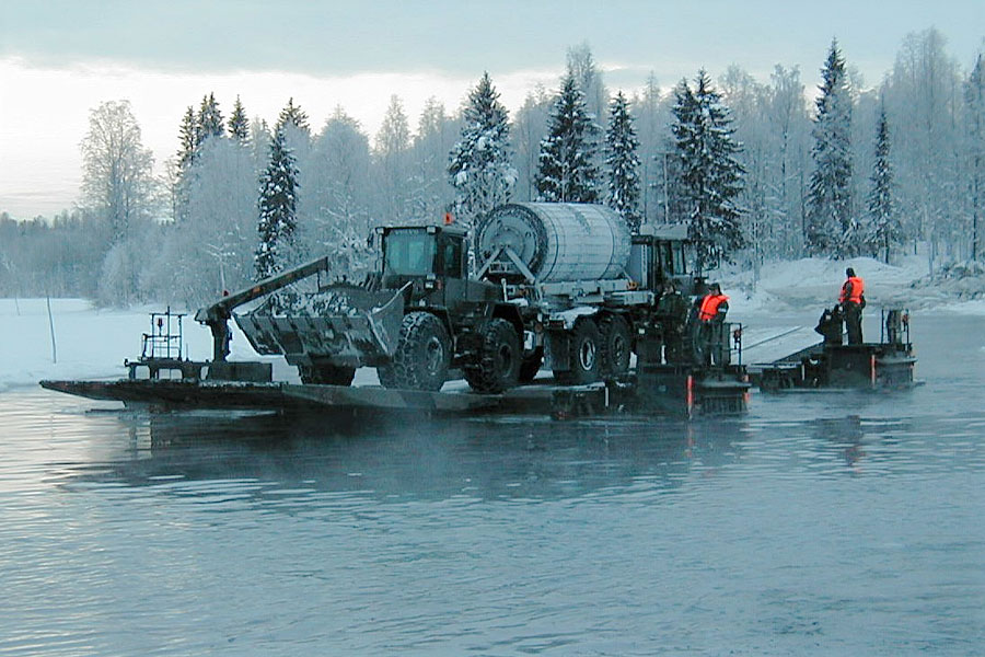 The amphibious bridge and ferry system M3 is the fastest available means for wet gap crossing within NATO. It can be used as a floating bridge or ferry to carry even the heaviest main battle tanks to negotiate wide wet gaps. The all-terrain M3 is ready for use within minutes – a vital factor on today’s transparent battlefield. The system has proven itself in use under a wide range of climatic and topographical conditions, from Tropics to Arctic.