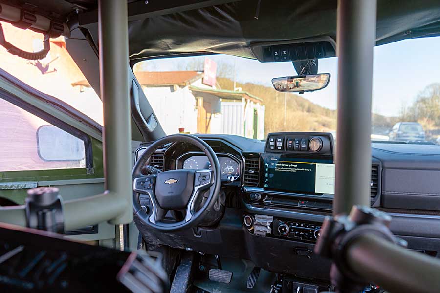 In a second US Army video sequence shot at Hohenfels viewers are treated to some close-ups of the NGTV-H, which was launched behind closed doors at AUSA 2024. A GM Defense Spokesperson last night informed JOINT-FORCES that ‘Next Gen’ will make its first public international appearance at IDEX 2025 in Abu Dhabi and stated: “NGTV-H is a diesel-powered solution that integrates GM’s 12-module advanced battery pack along with proven drive motors for the front and rear axles, which enables Silent Drive and Silent Watch capabilities. The vehicle’s technologies enable stealthy ingress and egress for high threat zones, while offering exportable power for soldier kit, sensors, shooters, and the like proliferating on today’s transparent battlefield.”