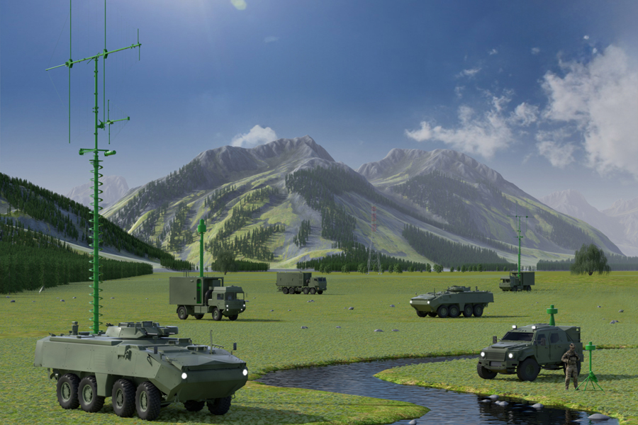 TAERVUS combines solutions for tactical and strategic reconnaissance of the enemy with the ability to effectively jam enemy communications systems. It comprises holistic sensor and system solutions in which modular, software-defined and networked systems operate in conjunction with each other. Among other things, the integrated Artificial Intelligence supports signal analysis, enables semi-automatic classification and prioritisation of detected signals, and opens up capabilities such as ‘predictive jamming’, in which jamming measures are optimised in an anticipatory and situation-dependent manner.