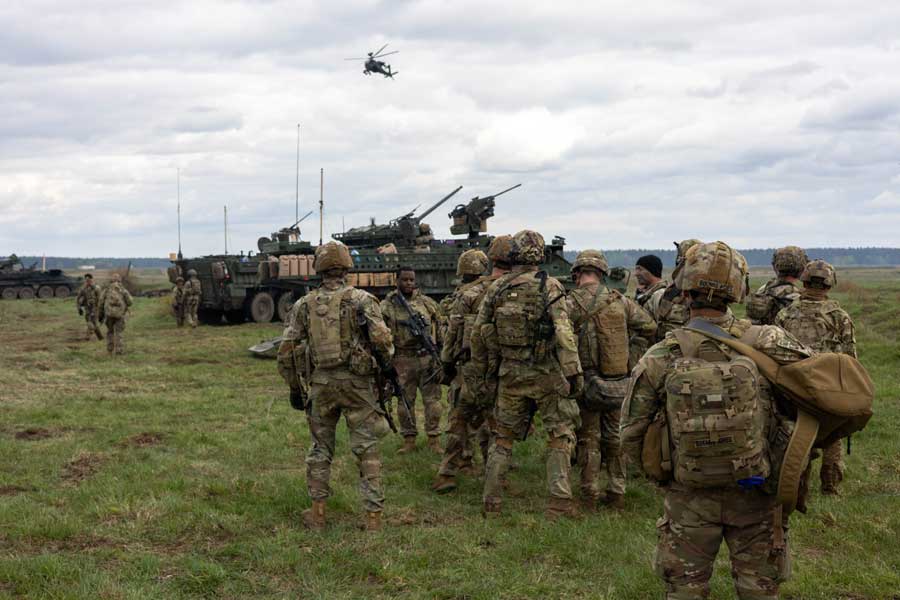US Soldiers assigned to the Eagle Troop, 2nd Squadron, 2CR participate in a CALFX during SABER STRIKE 24 at Bemowo Piskie Training Ground, April 16 [US Army Photo: Sgt Gianna Elle Sulger]