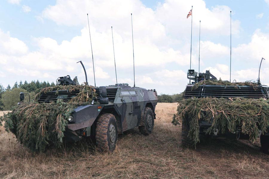 The six participating Joint Fire Support Teams from the three nations had to provide fire support from weapon systems in the air and on the ground in a coordinated and timely manner. Army howitzers, helicopters and mortars, as well as Air Force fighter planes, were available for this purpose. Three German artillery platoons with the Panzerhaubitze 2000, as well as a Dutch and a German mortar platoon, provided solid fire. Eurofighter fighter jets and Tiger attack helicopters, provided support from the air along with KZO drone systems for target location and reconnaissance. In addition, Leopard 2 battle tanks and Marder infantry fighting vehicles were used to realistically demonstrate the interaction of combined arms combat for the exercise participants.