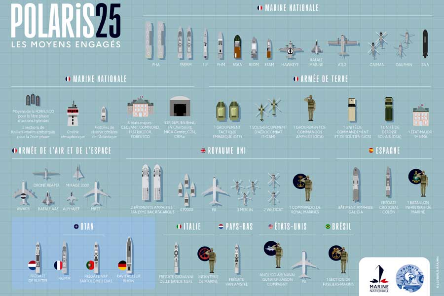As part of Exercise POLARIS 25, France conducted a rehearsal off Devon alongside its British, Spanish, Italian and Brazilian partners.
