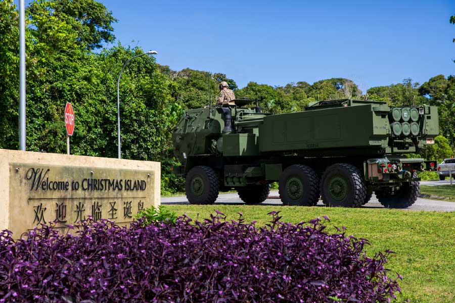 A United States Army M142 High Mobility Artillery Rocket System (HIMARS) transits through Christmas Island as part of Exercise TALISMAN SABRE 2025 [© ADoD: FlgOff Michael Thomas]