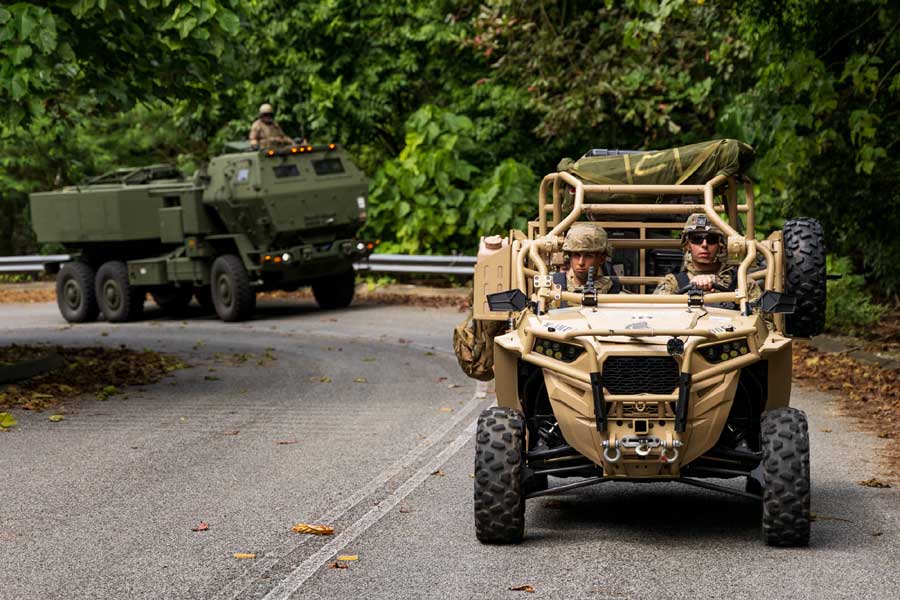 A US Army M142 High Mobility Artillery Rocket System (HIMARS) and Polaris MRZR transit through Christmas Island as part of Ex. TALISMAN SABRE 2025 [© ADoD: Cpl Sam Price]