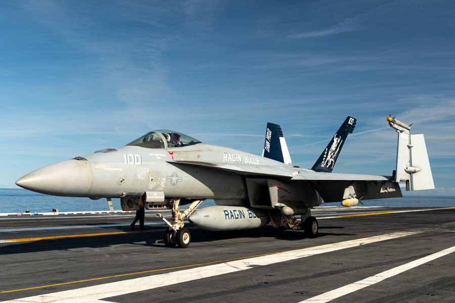 - 00:00 ~ US Navy F/A-18 Super Hornet multirole fighter jet prepares for take-off