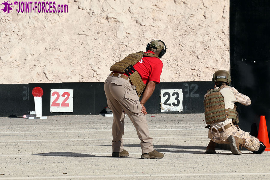 At each Stage at least two Officials, one moving with the Shooter throughout, watched him at all times and had eyes on every target plus Scorers and the Event Coordinator also oversaw proceedings. The Officials during AWC are mostly bilingual retired Special Forces personnel, with Arabic or English as their mother tongue, and throughout each Event there was always an Official on hand to answer queries in either language; Team Translators could also be present at both the Start and Finish of any Event, plus at major Stages if deemed necessary, but each team I worked with (35 out of 38) had several fluent English speakers in their ranks.