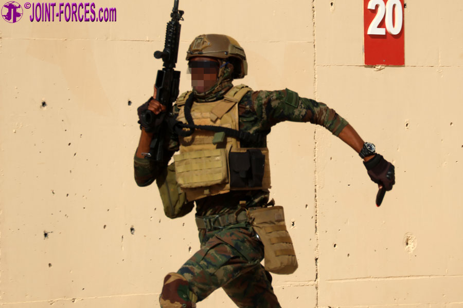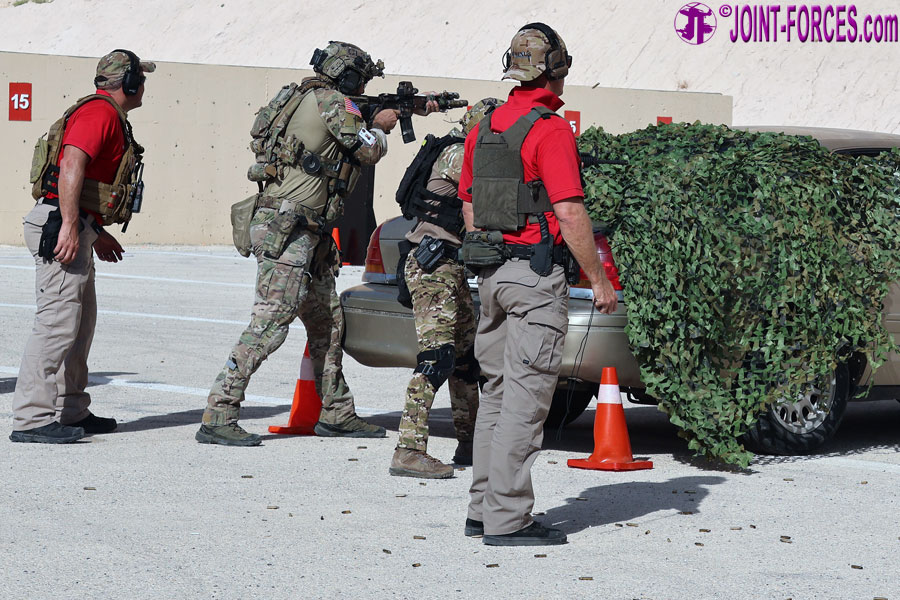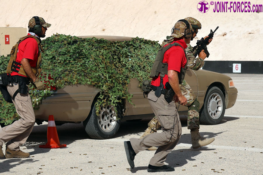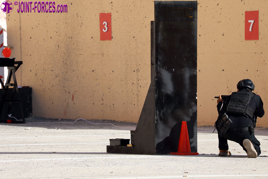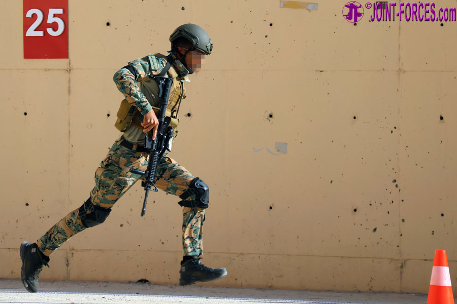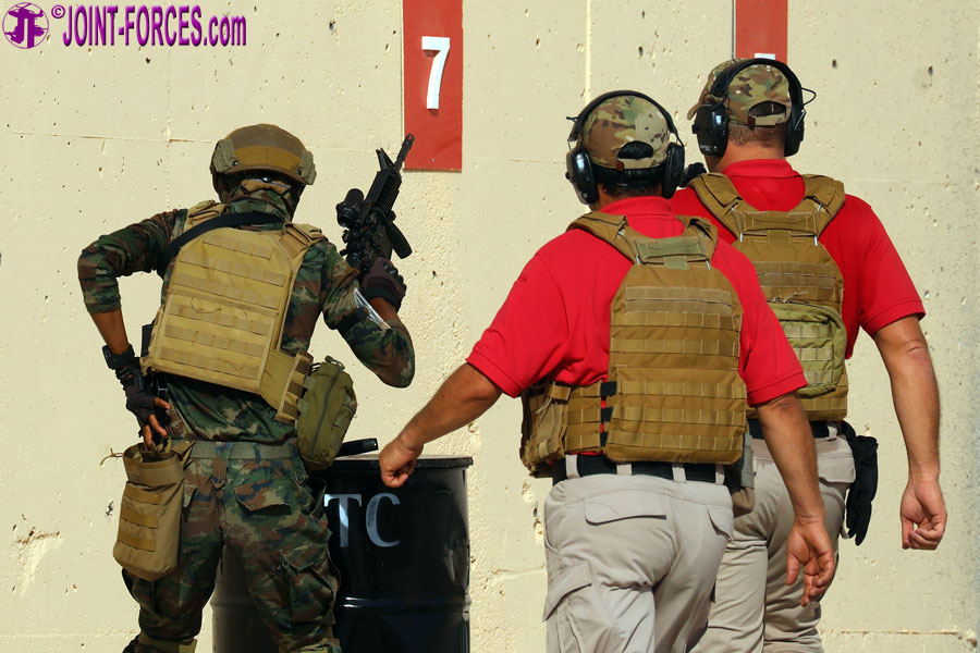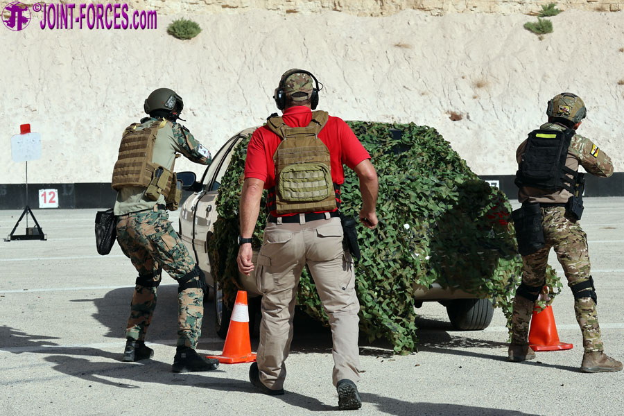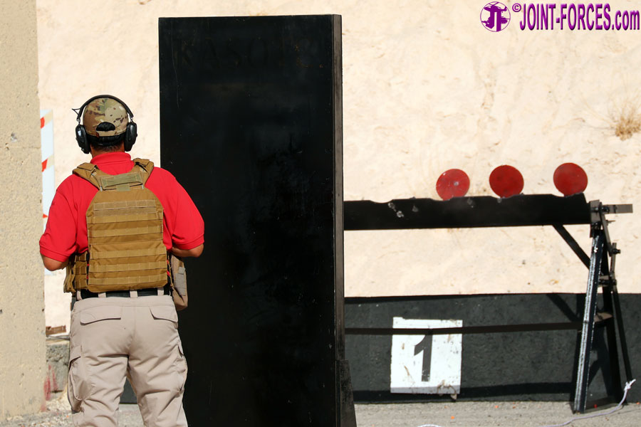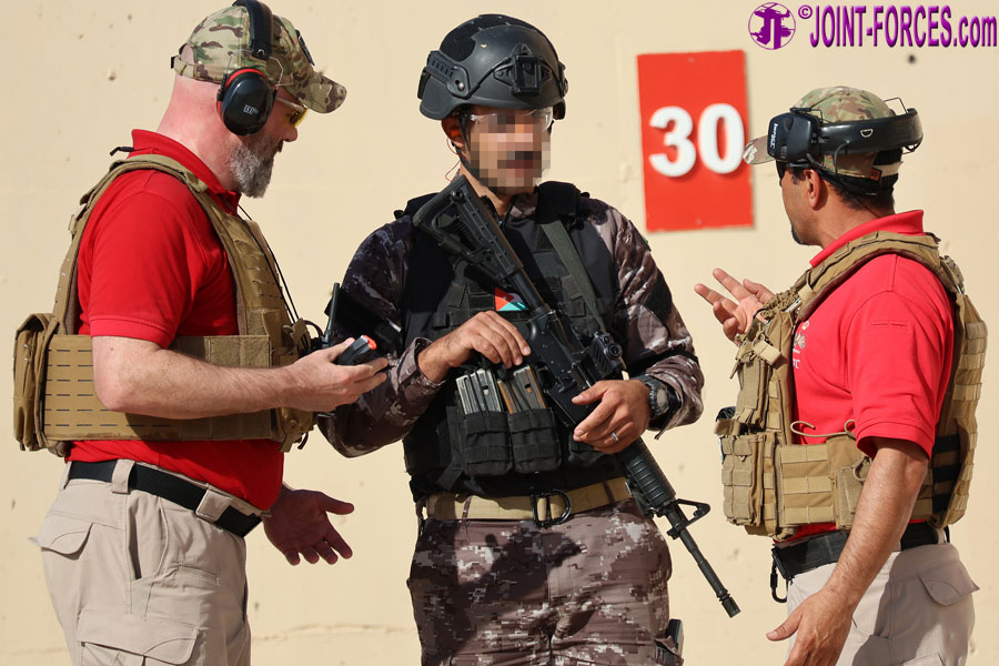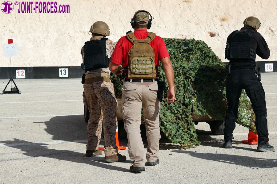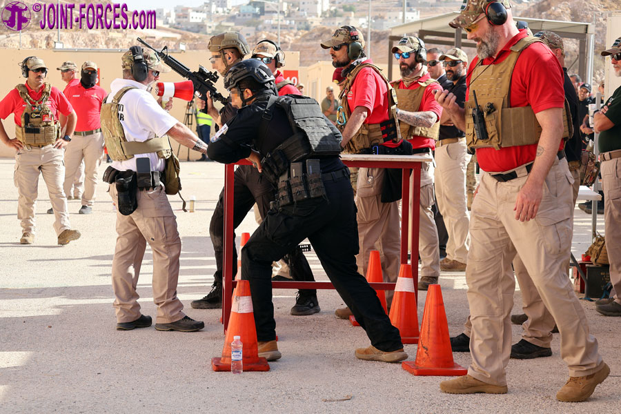 This year’s TOP SHOT was the fifth such event I have watched over the last eleven years and knowing that Round One and Round Two are always pretty frenetic as 32 Teams plus their supporters cram the boundary behind the range to cheer on their Shooters until knocked out, I stayed away and cleared some website work until near the end of Round Two. By then the roughly 300-strong crowd of international SpecOps personnel on the boundary had thinned out a lot, plus the number of Jordanian Armed Forces (JAF) photographers and cameramen trying to record all participants in the event for official print and screen use had reduced in direct correlation with the number of remaining Shooters. From Round Three onwards there was therefore less chance on me (working inside the safety cordon) blocking the view of Teams supporting their Shooters, and the possibility of one of the JAF media team getting into my frame was much reduced.