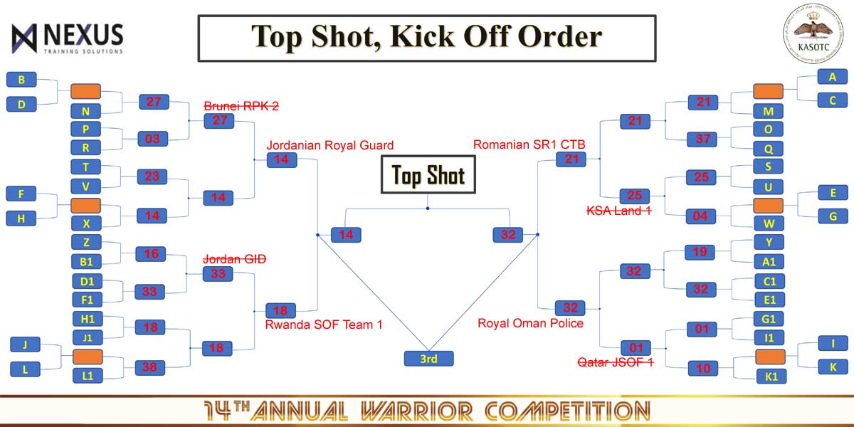 TOP SHOT was first of five events at the 14th Annual Warrior Competition (14AWC) for Special Operations Forces at KASOTC in held Jordan, reports Bob Morrison.