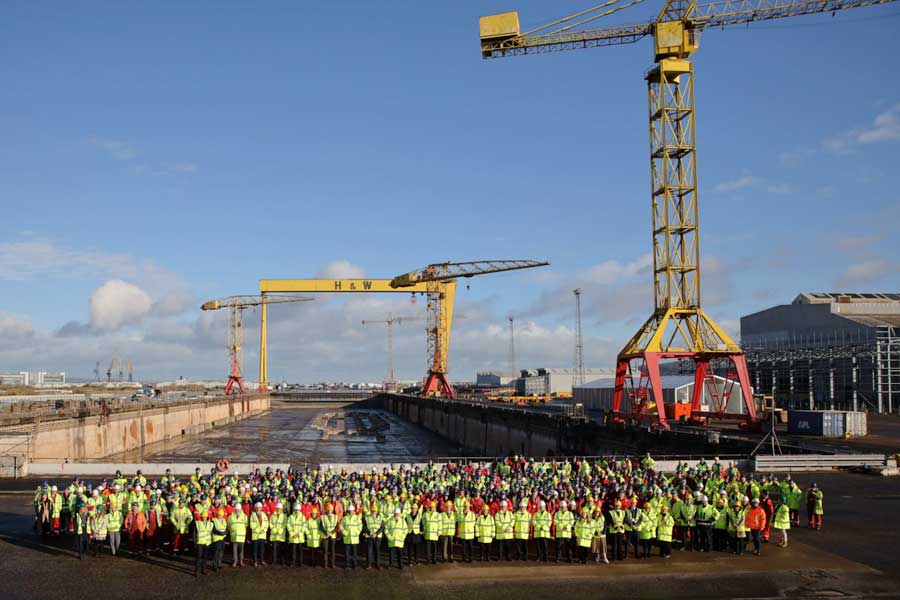 Team photo at the Harland & Wolff shipyard in Belfast [© Navantia]