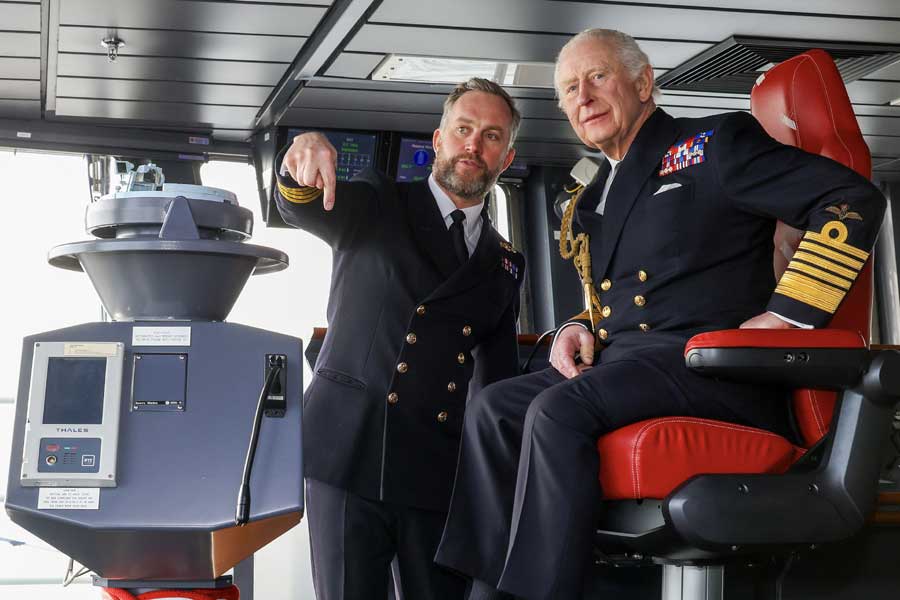 The King followed in his late mother’s footsteps with this visit – Queen Elizabeth II similarly visited aircraft carrier HMS Queen Elizabeth alongside in Portsmouth in 2021 before the then-flagship deployed on her own global mission to the Indo-Pacific. She was the last reigning monarch to visit a Royal Navy warship at sea when with her husband HRH Prince Philip she embarked in minehunter HMS Brocklesby making the short trip from Rosyth to Leith, escorted by HMS Maxton, in 1988.