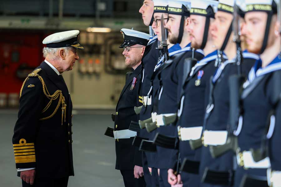Visiting in his role as the Honorary Commodore-in-Chief Aircraft Carriers, His Majesty – who is Head of the Armed Forces – met serving Royal Navy and Royal Air Force personnel and addressed the ship’s company. His Royal Highness told personnel gathered in the hangar: “As you prepare to set sail as the flagship of the UK Carrier Strike Group, building on the success of HMS Queen Elizabeth’s inaugural deployment in 2021, I just wanted to express, on behalf of the nation, my heartfelt gratitude for the extraordinarily valuable contributions and personal sacrifices that you and your families continue to make in the name of duty.