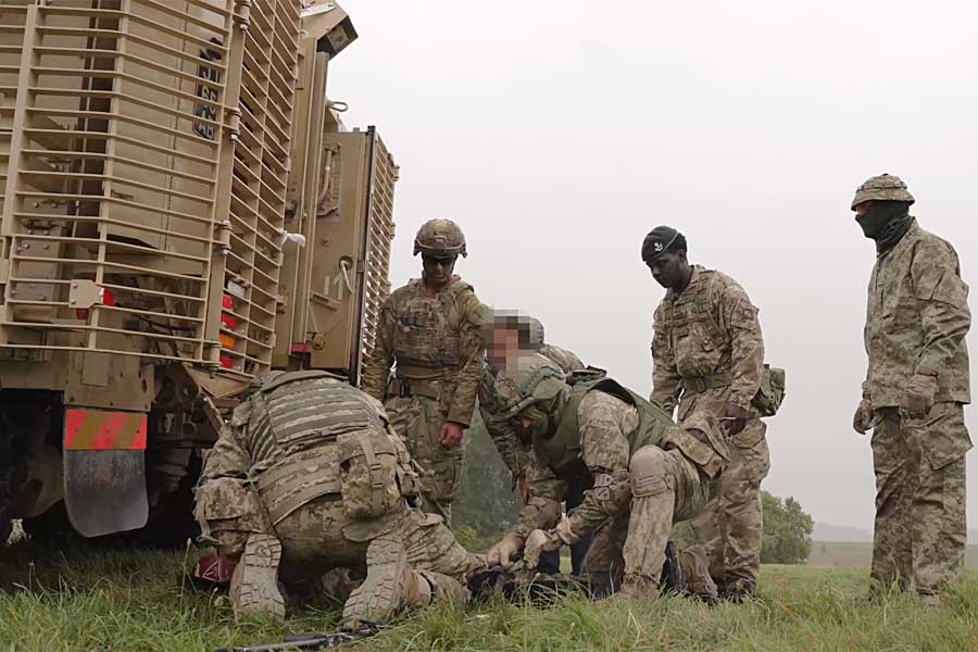 - 00:00 – Trainers giving Ukrainian volunteers a lesson on casualty extraction