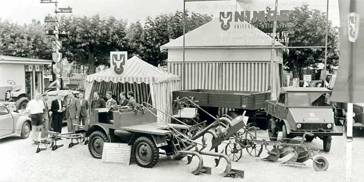 Even before the first public presentation, Hans Zabel abbreviated the unwieldy name Universal-Motor-Gerät [Universal Motor Device] with the acronym ‘Unimog’. The vehicle was presented to the public for the first time under this catchy name on August 29, 1948 at the exhibition of the German Agricultural Society (DLG) in Frankfurt am Main and immediately received 150 pre-orders.