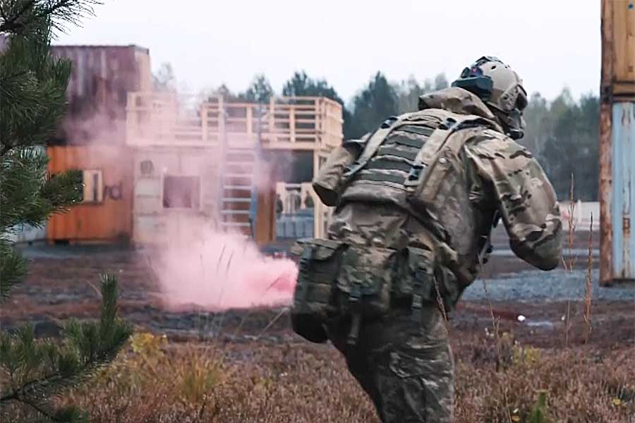 - 00:38 ~ Ukrainian trainees moving through shoot house